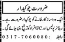 A respectable private residence in Peshawar is looking for an experienced and trustworthy Chowkidar (watchman). Preference will be given to retired personnel from the Army, Police, or Frontier Constabulary (FC). This is a great opportunity for disciplined individuals looking for a reliable position in a peaceful setting. Latest UOG Jobs
