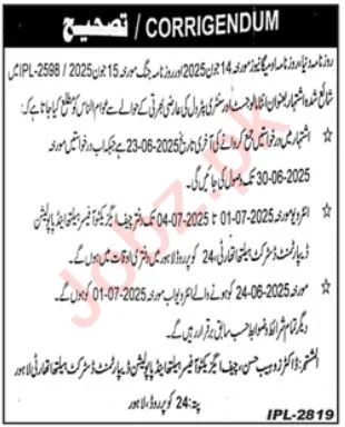 The Punjab Government has issued a corrigendum regarding the advertisement IPL-2598/2025, published on 14 June 2025. Candidates applying under this advertisement should take note of the revised interview dates and ensure they appear according to the updated schedule. Latest COMSATS University Abbottabad Jobs
