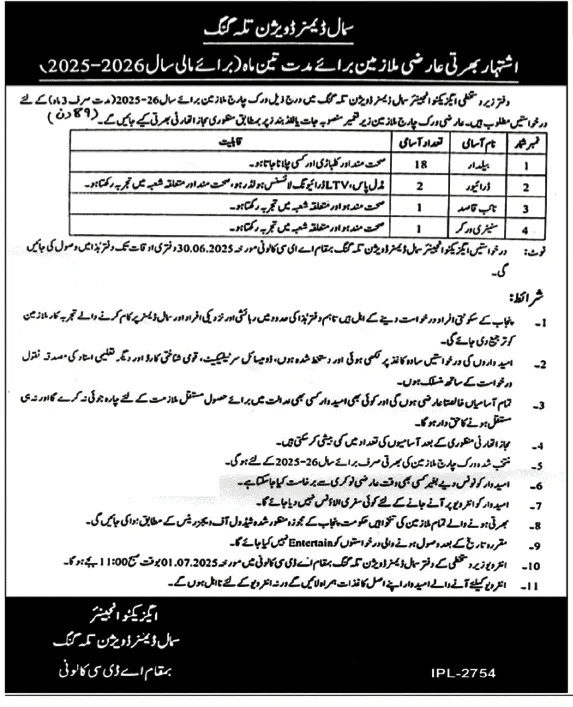 Small Dams Division Talagang Jobs 2025